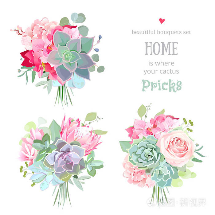 混合的多肉植物 Echeveria 牡丹 普罗蒂亚花束的优雅插画 正版商用图片0fto54 摄图新视界